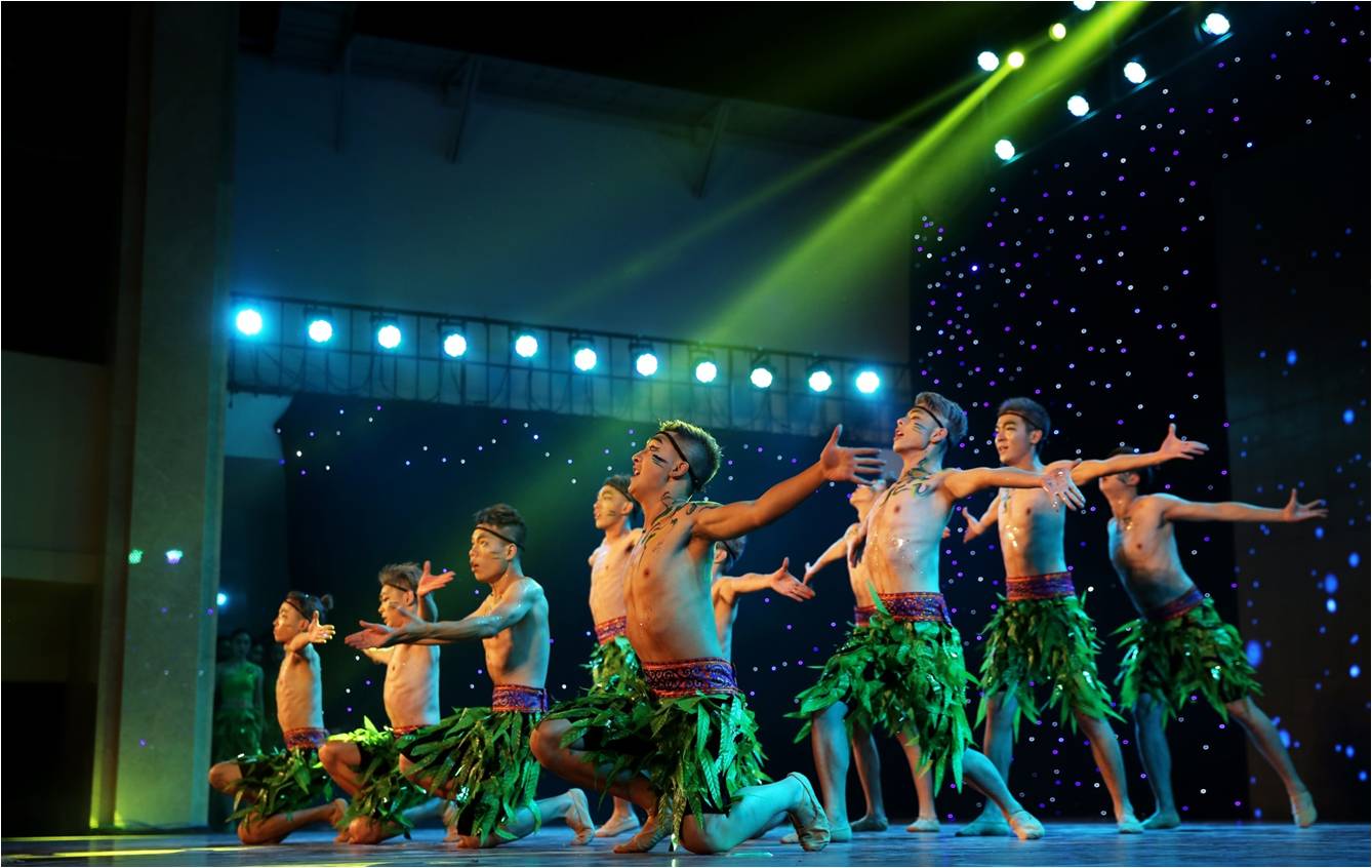 以漫天闪亮的繁星为背景,以树叶作为衣物上的装饰,新闻院的出场吸引了很多观众的目光。为了节目效果,参加表演的男生全都裸着上身,他们踏着节奏感强劲的鼓点,开始舞蹈。他们是一棵棵吉祥树,是原始部落里对吉祥安康的呼唤与呐喊。
